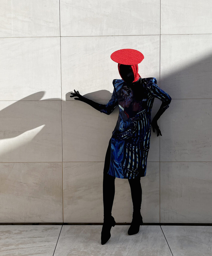 Big from “Big Heads, (2013),” is a project by Mónica Sánchez along with three other artists. Mónica, an architect and photographer, creates her own 3D head thanks to a fleeting internet application, transforming the digital into a tangible paper model. This process, which goes from virtual to real, captures the essence of digital decontextualization and turns it into a living muse. Mónica transforms into her own creation, symbolizing the union of technology and craftsmanship.